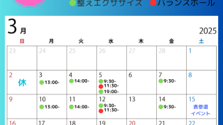 3月のグループレッスンの予定を公開しました。 整えピラティス、整えエクササイズ、バランスボール、マンツーマンレッスン