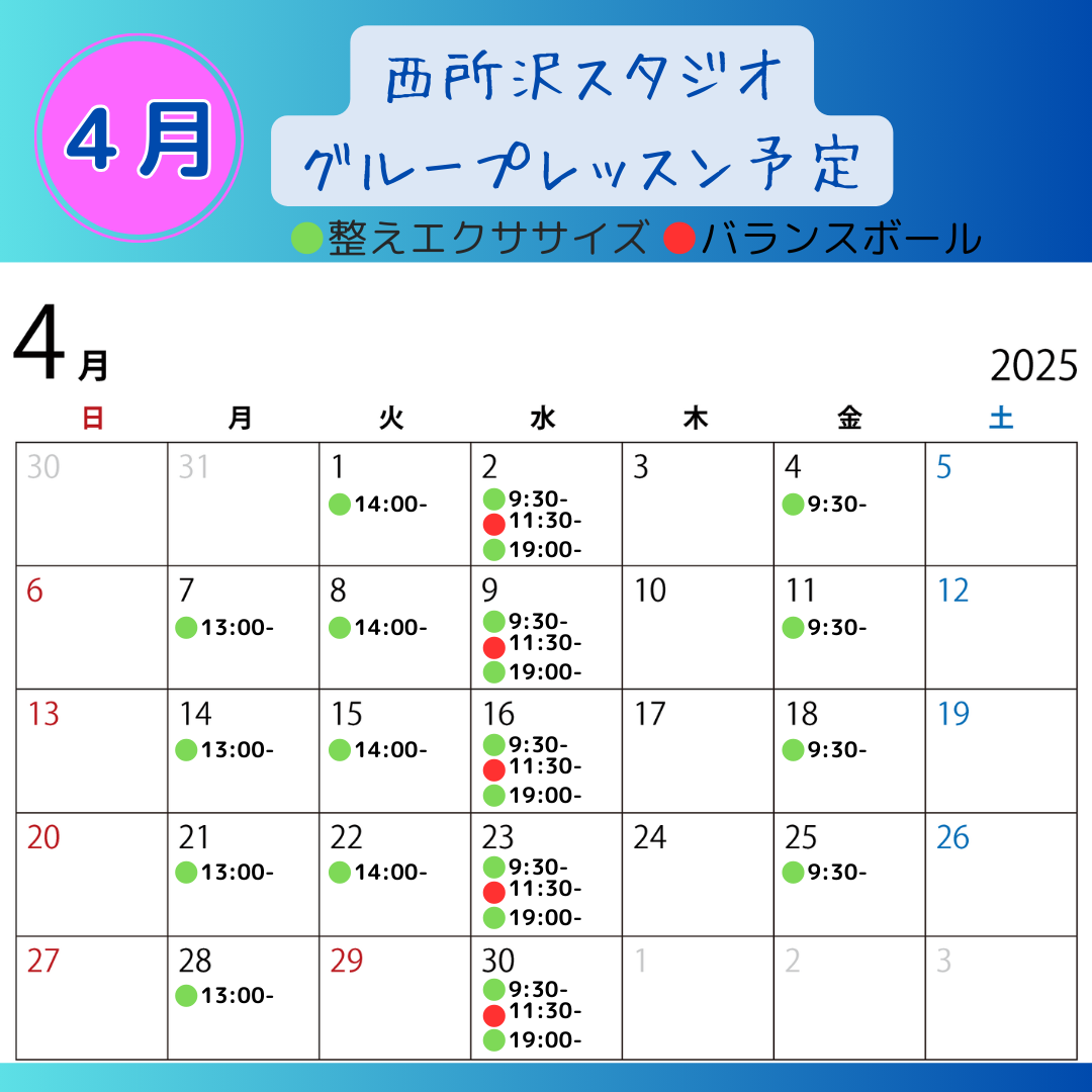 3月のグループレッスンの予定を公開しました。